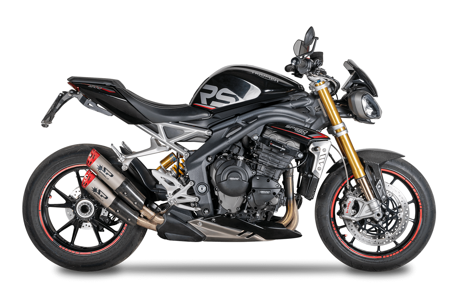 The first proposal is the homologated slip-on with double exit connecting to the two original fittings, allowing you to enrich the motorbike with the double Dyno silencer and the two carbon heat shields precisely designed for the Speed Triple.